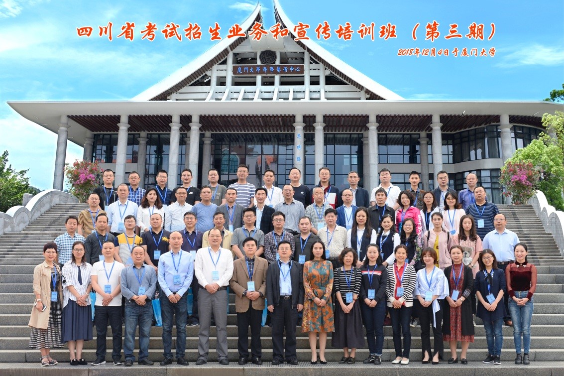 2018年12月3日至于7日,第三期刊四川省教育考试院招生系统研修班在厦门大学顺利举行。本次研修班围绕“新高考与招生考试改革”展开,培训班由四川省教育考试院党委舒欣副书记带队,共有四川省教育考试院及各地市招考系统工作人员60余名学员参加了培训。厦门大学教育研究院党委书记郑冰冰主持开班仪式,厦门大学考试研究中心主任刘海峰教授为学员们致欢迎辞。