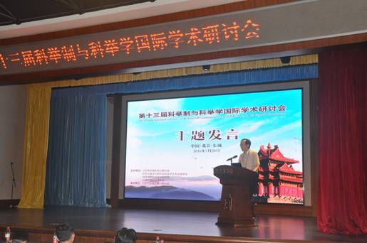 大会的开幕式上,北京市东城区文化委员会主任王伟东先生、中华炎黄文化研究会常务副会长张希清教授、厦门大学教育研究院院长刘海峰教授、台湾暨南国际大学徐泓教授等作了精彩致辞。刘海峰院长还作了《科举制的遗产与科举学的意义》的主题发言,从制度遗产、观念遗产、习俗遗产、文献遗产、文物遗产五方面阐明了科举制遗产的分类以及科举学研究的意义,报告融汇古今、底蕴深厚,尽显厦大风采与大家风范。