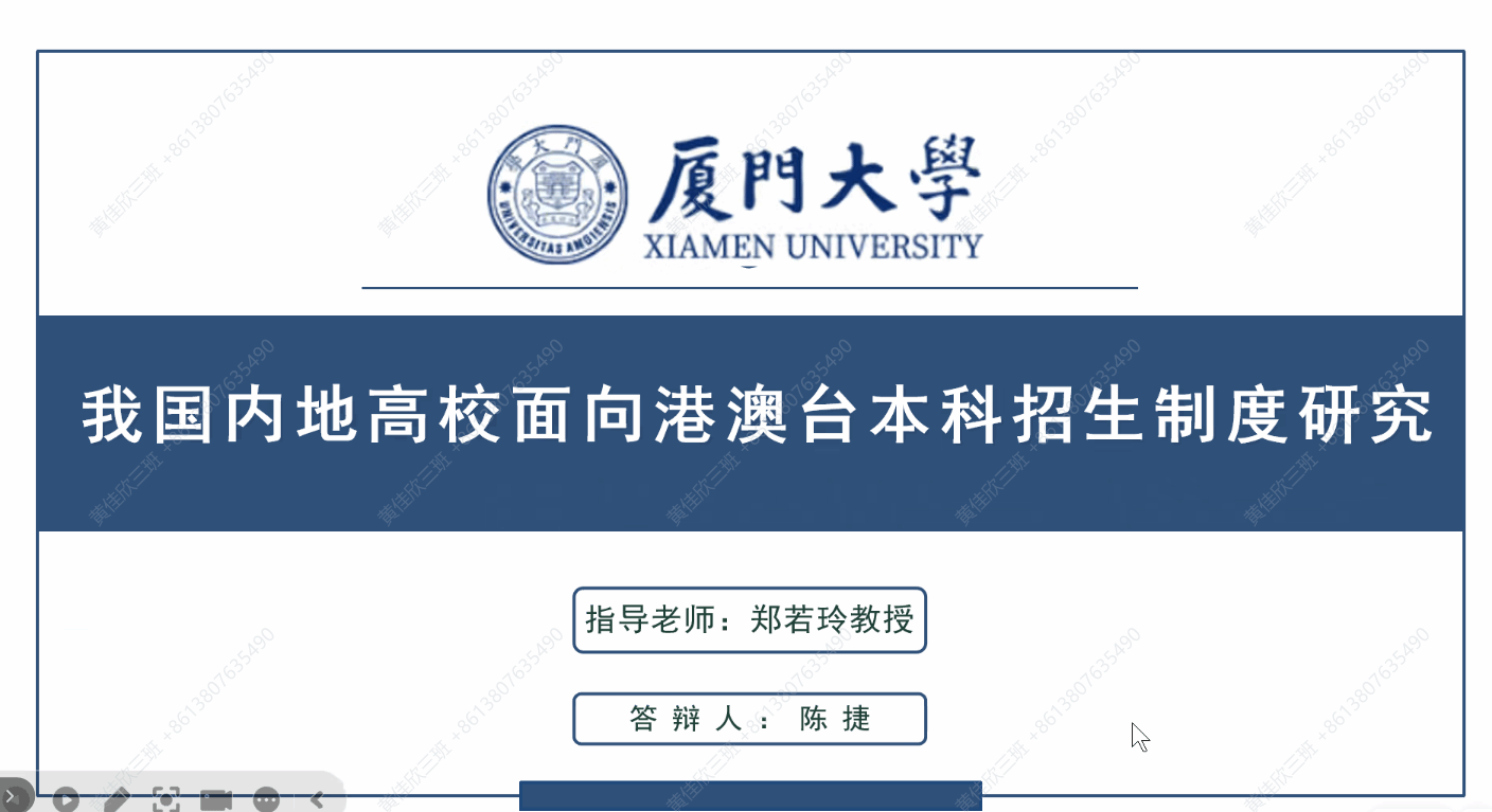 陈捷同学围绕其博士论文题目“我国内地高校面向港澳台本科招生制度研究”,从研究缘起与研究意义、文献综述与概念界定、理论基础与研究设计、研究内容与研究结论、近期的修改调整等方面做了细致讲解。